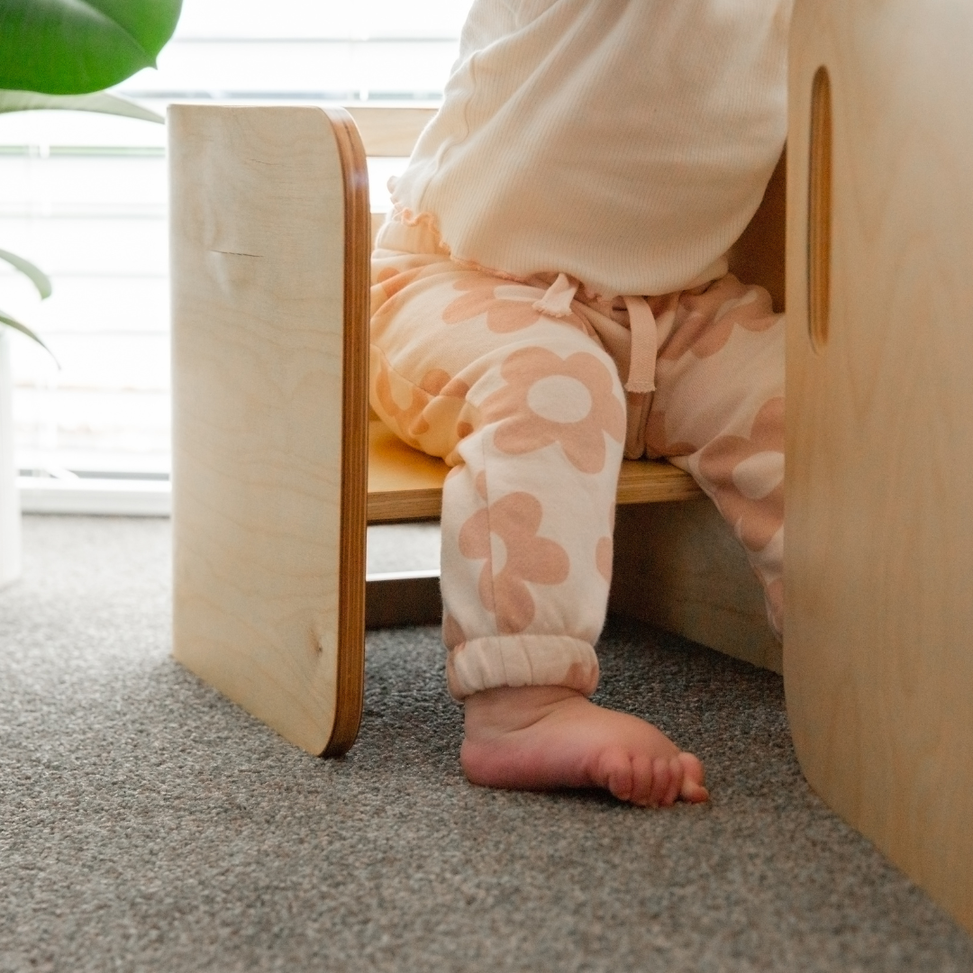“Just such a practical and versatile addition. It’s helping our toddler learn independence, rules like ‘we don’t stand on chairs or tables’, ‘we sit down to eat’ and ‘we don’t sit on tables’. We’ve used it as a coffee table, as side tables when needed – and even on its side to paint my nails on 😅 It’s worth the spend in the long run!” – Hannah D.